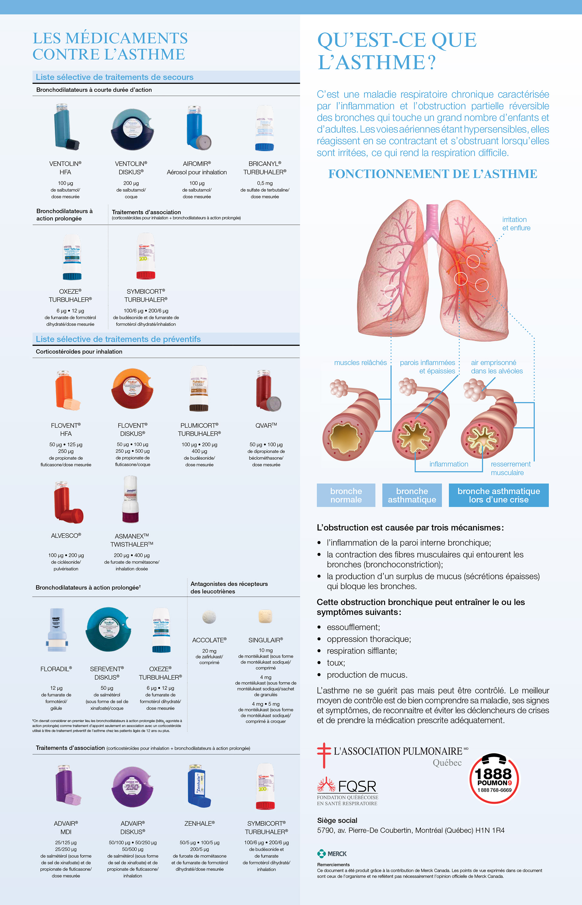 Affiche informative sur l'asthme et différents médicaments pouvant le traiter pour l'Association pulmonaire du Québec. / Information design poster on asthma and different treatments for Quebec's Lung Association.